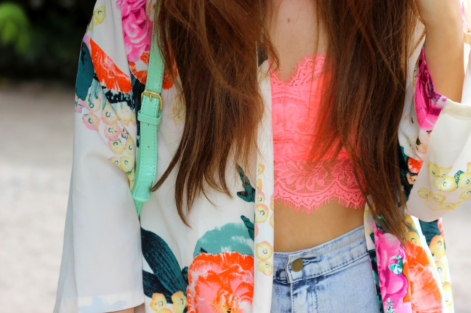Sunny weather and floral kimonos, is there a better combination? This beauty is one of my recent purchases from H&M but having ordered online it has taken a while to get to me however it was well worth the wait! It is such beautiful material and so perfect for causal wear and for a bikini cover up. Definitely one of my summer essentials! Couldn't resit styling it with my beautiful new lace bralet which I need in every colour! Its only £22 which I think is actually a reasonable price for such a gorgeous piece. Of course I had to wear my current favourite jeans from PrettyLittleThing, such a fab denim shade for summer and all finished off with my gorgeous pastel bag from Paul's Boutique.