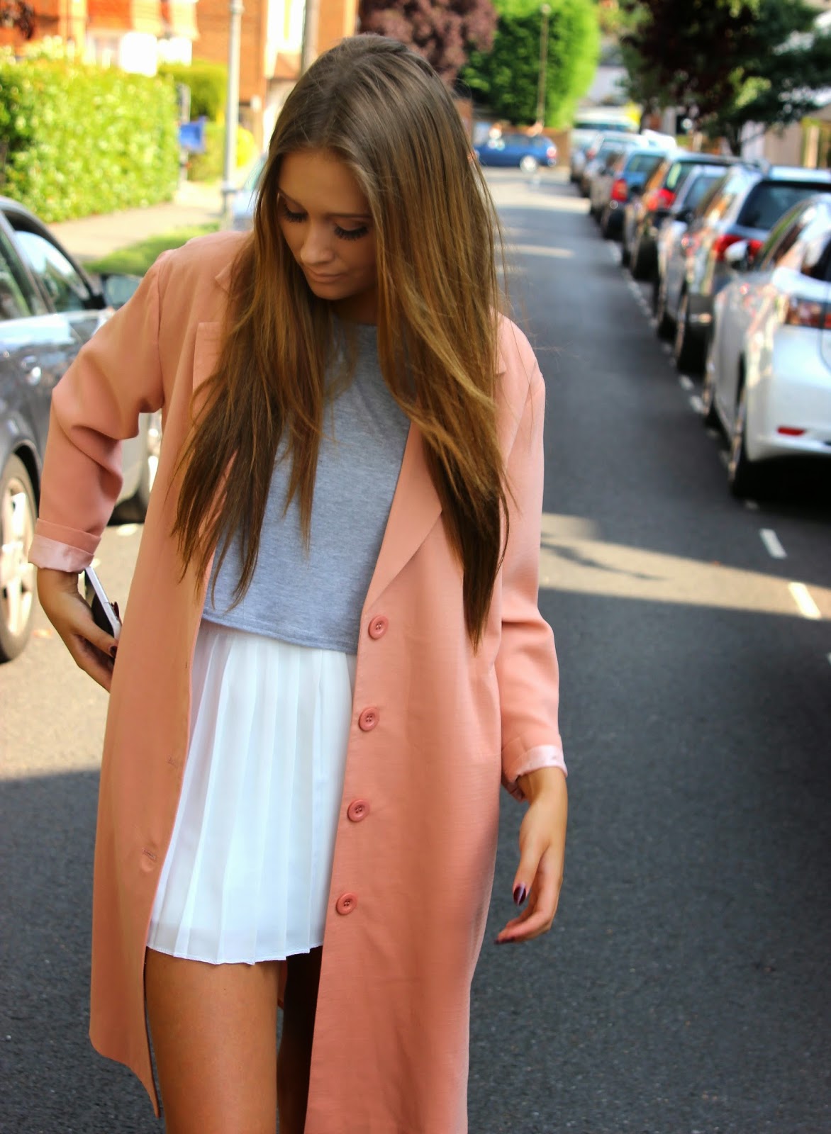 I am not normally someone who wears skirts during the day but after seeing all the beautiful tennis style skirts around I am learning to love them. This cute cream one is from Boohoo and it also comes in 4 other colours, I now think I need them all! However make sure you go a size up as they come up small! This is another outfit from my Boohoo style edit so everything is from Boohoo. I must say I am very impressed with Boohoo at the moment, I find myself regularly lusting after the new in section especially over all the new jackets and coats that are coming in for autumn, like this amazing longline jacket which is such a versatile colour and gives a really stylish look to any outfit. I think this jacket would also look so cute just with some jeans, a white oversized tee and some converse.